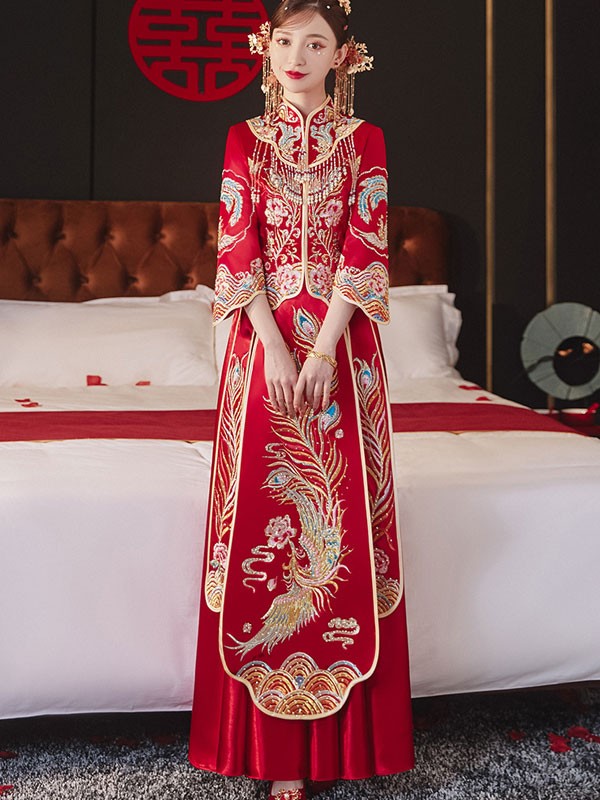 2026 Embroidered Phoenix Wedding Qun Kwa with Full Maxi Skirt