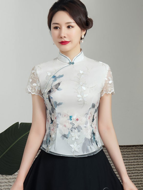 2026 Floral Embroidered Qipao / Cheongsam Blouse Top