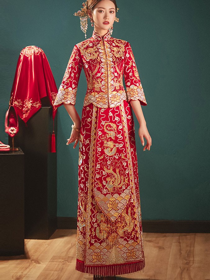 Beads Dragon Phoenix Embroidery Wedding Bridal Qun Kwa