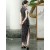 Black Floral Velvet Maxi Cheongsam Qipao Dress