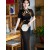 Black Red Mothers Appliques Maxi Qipao Cheongsam Dress