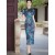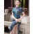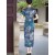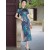 Blue Floral Print Mothers Maxi Qipao Cheongsam Dress