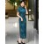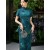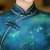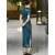 Blue Floral Print Silk Long Qipao Cheongsam Dress