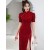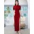 Burgundy Lace Thigh Split Cheongsam Qipao Dress