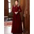 Burgundy Shimmer Velvet A-Line Wedding Qipao Cheongsam Dress