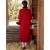 Champagne Red Wool Blend Embroidered Dragon Poncho Cape Coat