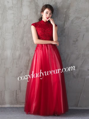 Take a moment to marvel at the this wine red tulle qipao dress.