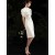 Gray White Embroidered Puff Sleeve Midi Cheongsam Dress