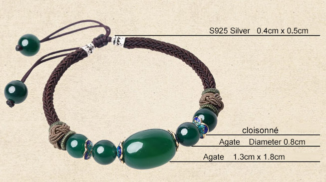 Green Agate Beads Bracelets, Handmade String Knot Bracelet