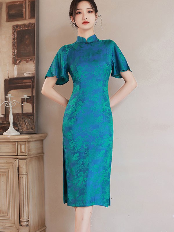 Green Chinese Painting Print Qipao Cheongsam Dress