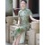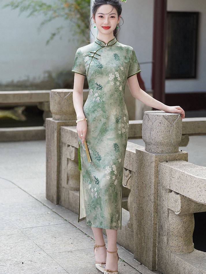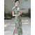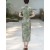 Green Floral Print Maxi Qipao Cheongsam Dress