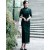 Green Floral Velvet Maxi Cheongsam Qipao Dress