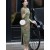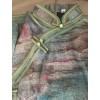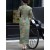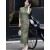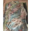 Green Print Linen Half Sleeve Maxi Cheongsam Qipao Dress