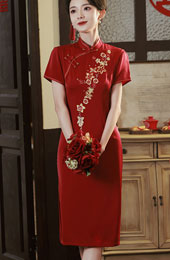Red Bride Mothers Midi Wedding Cheongsam Qipao...