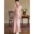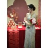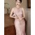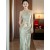 Pink Green Jacquard Halter Cheongsam Qipao Dress
