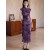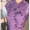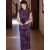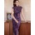 Purple Floral Velvet Long Qipao Cheongsam Dress