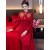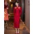 Red Fleece Long Sleeve Wedding Bridal Cheongsam Qipao Dress