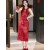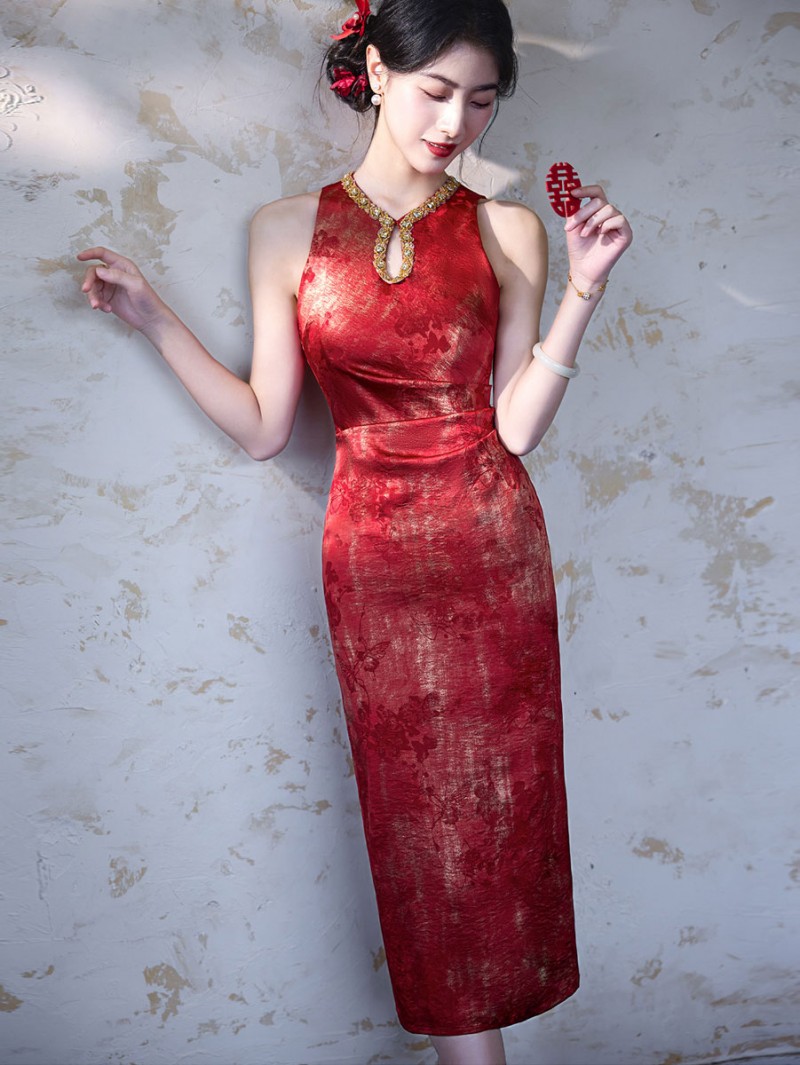 Red Keyhole Halter Long Wedding Cheongsam Qipao Dress