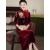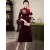 Red Purple Mothers A-Line Embroidered Velvet Cheongsam Qipao Dress