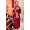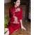 Red Sequins Phoenix Midi Wedding Bridal Cheongsam Qipao Dress