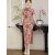 Red Shimmer Floral Print Midi Cheongsam Qipao Dress