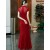 Red Shimmer Lace Fishtail Bridal Wedding Cheongsam Qipao Dress