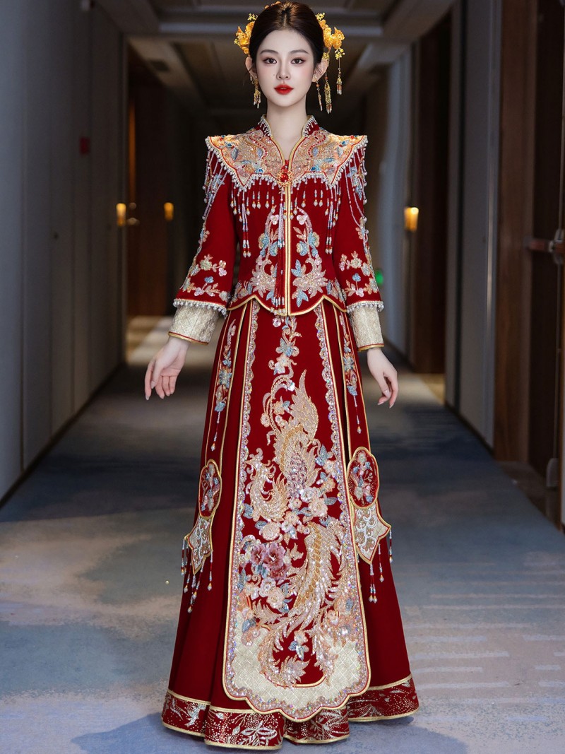 Winter Velvet Beads Phoenix Wedding Bridal Qun Gua Outfits